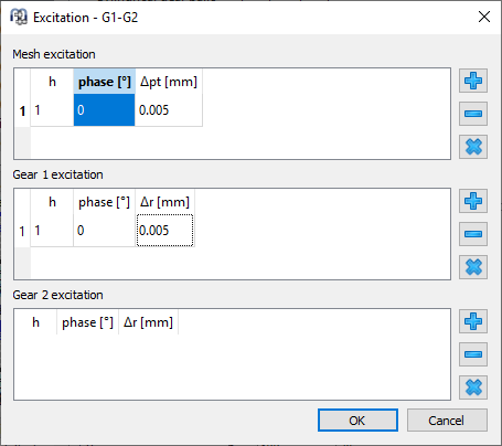 •An excitation based on roundness errors of the gear 2 can be defined like for gear 1.